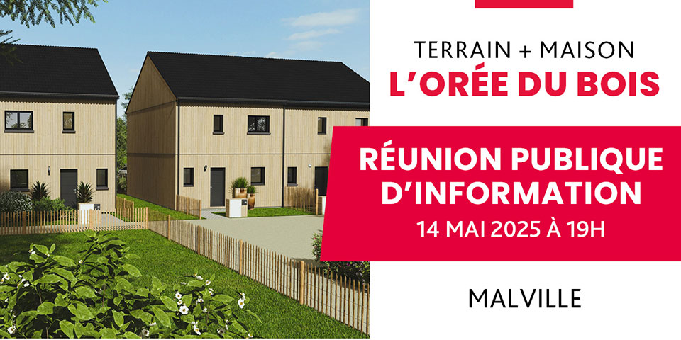 Le Pôle Métropolitain Nantes Saint-Nazaire, la mairie de Malville et le Groupe Lamotte ont le plaisir de vous inviter à la réunion publique d’information afin de présenter le programme « L’Orée du Bois ».