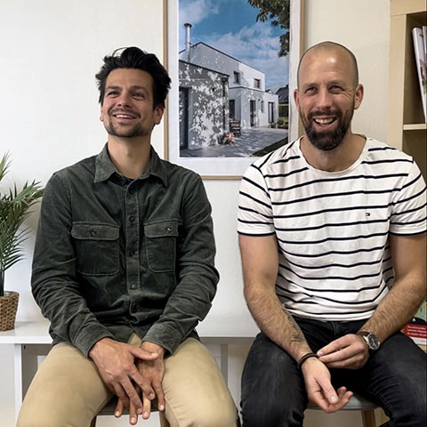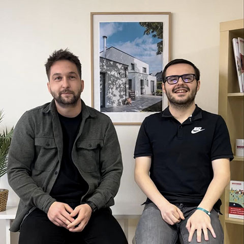 Tournées directement dans les locaux de notre agence constructeur de maison à Rennes, les vidéos mettent en scène deux de nos collaborateurs assis côte à côte. Une manière de capturer des témoignages authentiques, dévoiler le quotidien et la passion de chacun, et promouvoir la coordination interservices.