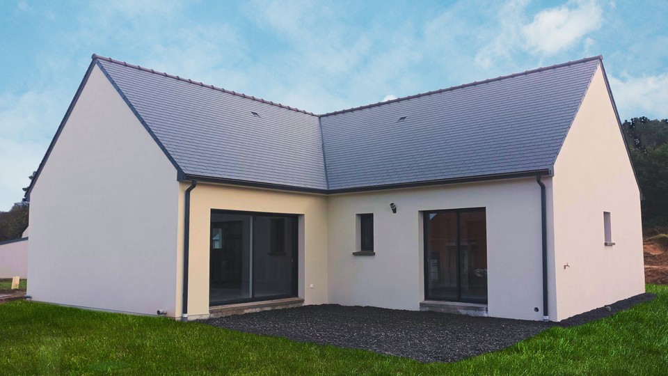 La maison en forme de “L” est un plain-pied d’une surface de 101,46 m², avec un garage de 17 m².