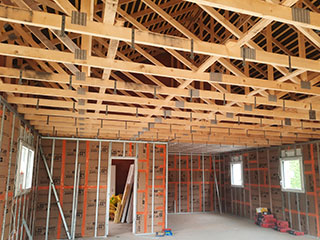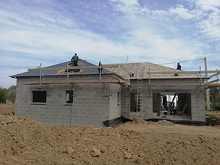 La mise hors d’eau : opération de pose de la charpente et de la couverture. Le choix de cette dernière devra se faire en accord avec le règlement de la commune sur lequel la maison est construite.