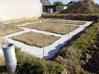 La construction des fondations: selon l’étude de la nature du sol, plusieurs solutions sont envisageables. D’une profondeur variable, les fondations vont permettre d’assurer la solidité et la stabilité de l’implantation de votre maison dans le sol.