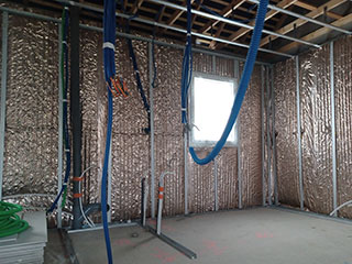 Le conducteur de travaux vérifie la bonne exécution de la pose de l’isolation, de la fixation des menuiseries, des gaines VMC des arrivées et évacuations, ainsi que la bonne implantation de l’appareillage et des cloisons avant leur réalisation.