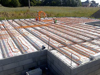 Le vide sanitaire empêche les remontées d’humidité et offre une isolation thermique. Le plancher chauffant est posé sur un plancher isolant, lui-même soutenu par les murs de soubassement qui reposent sur les murs de fondation de la construction.