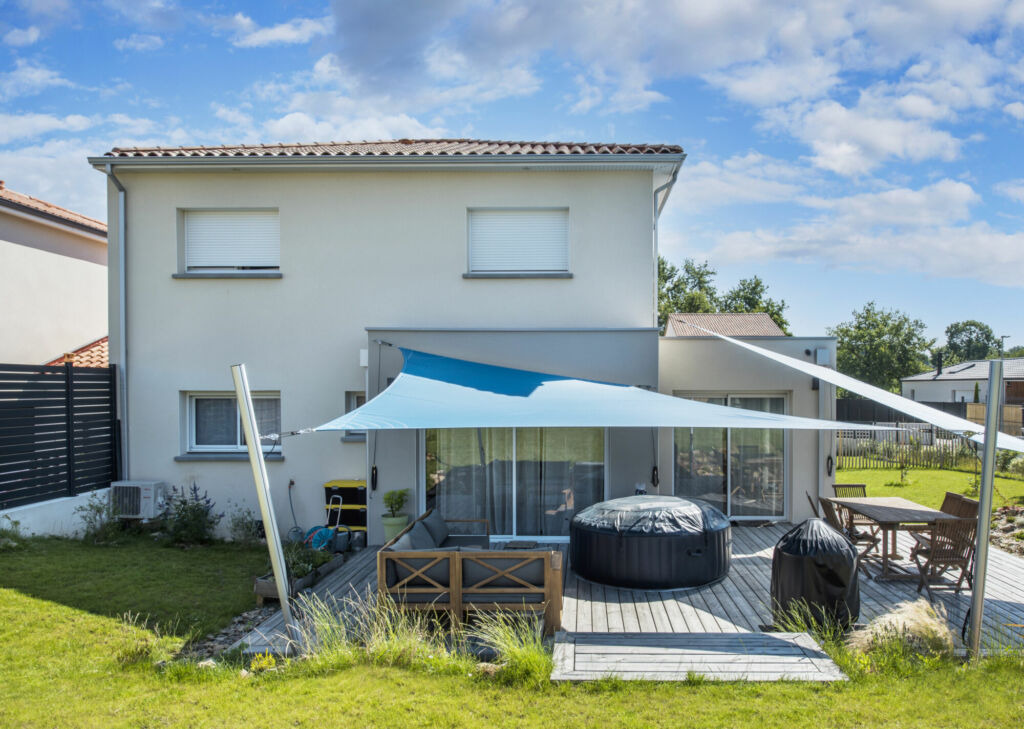 Sur sa grande parcelle de 668 m², nos clients ont pris le soin d’aménager un extérieur élégant et accueillant. La terrasse en bois de 31 m², le coin repas, le salon de jardin et le jacuzzi offrent un espace extérieur idéal pour profiter des beaux jours en toute tranquillité.