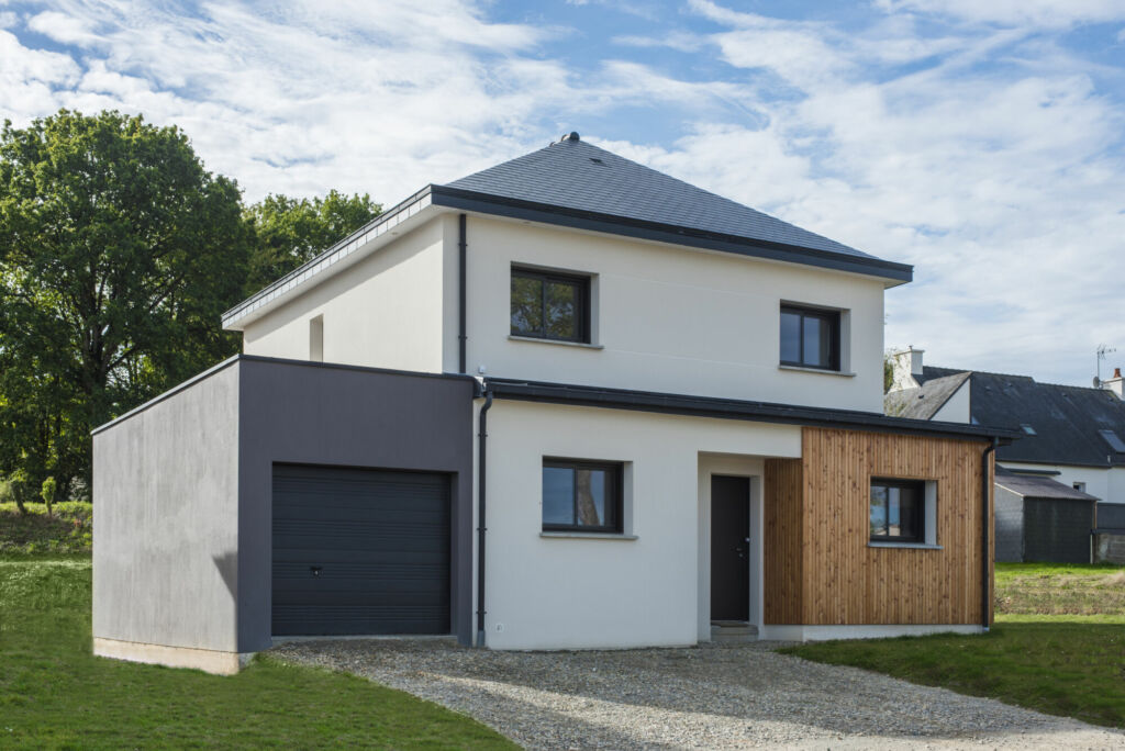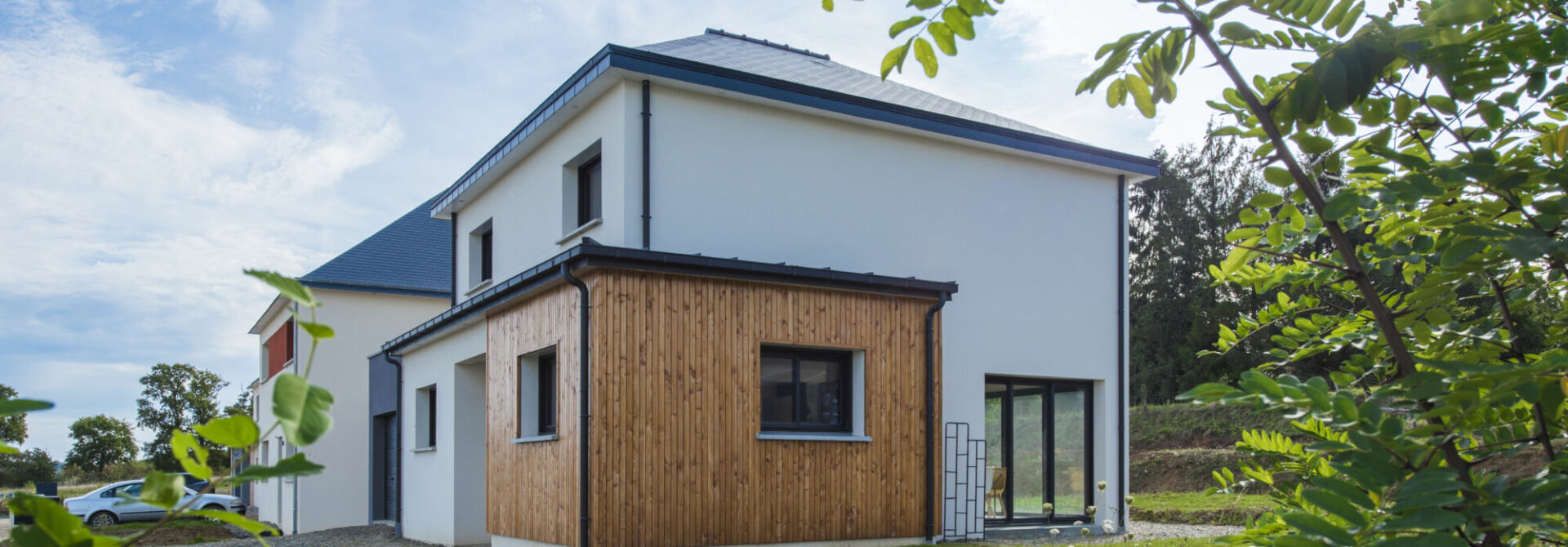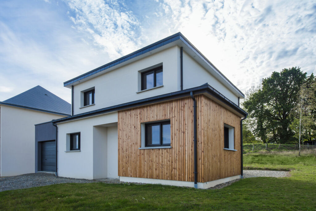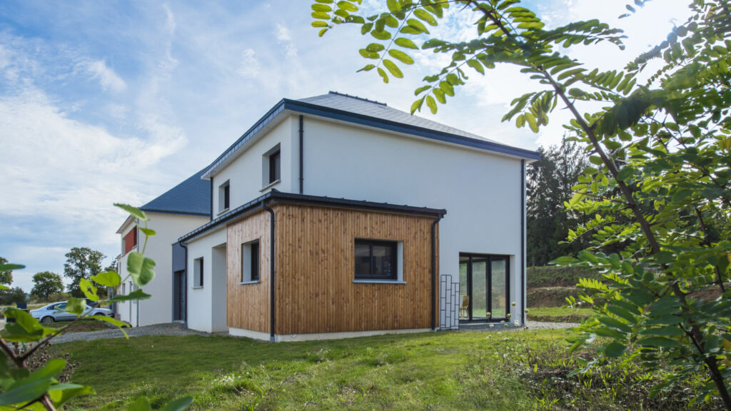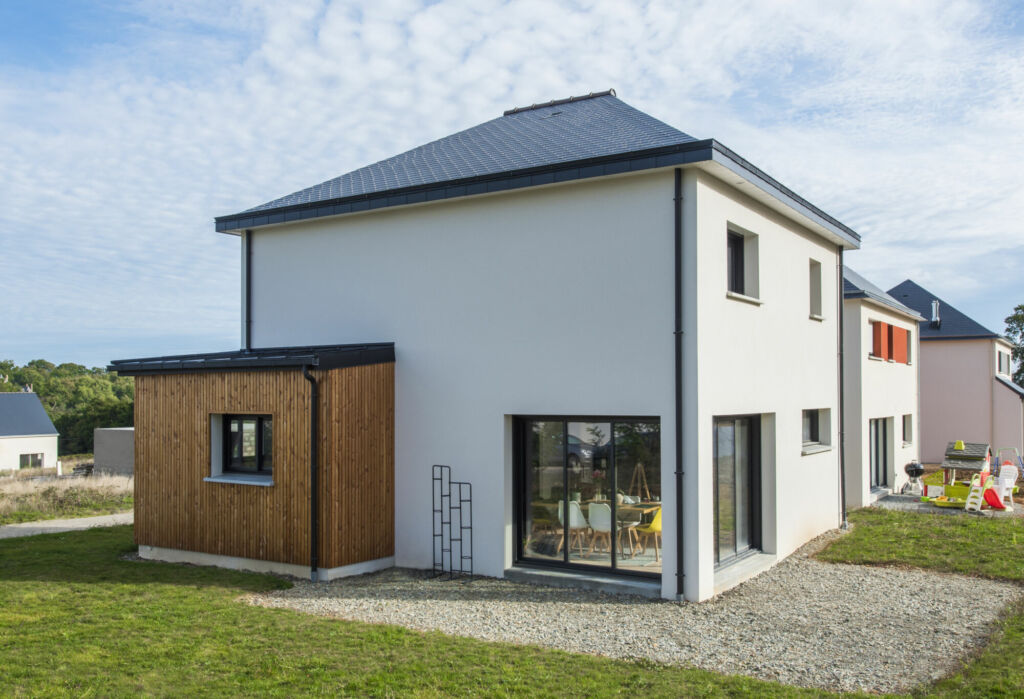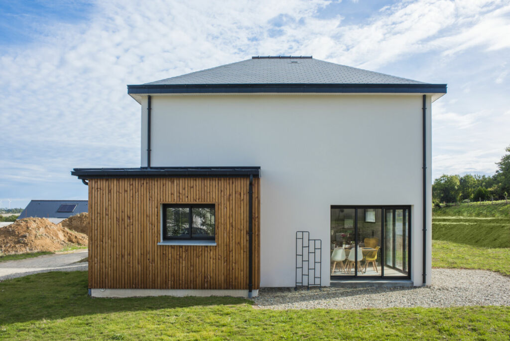 Le bois, matériau par excellence de la construction écologique, est mis à l’honneur dans ce projet de maison individuelle à proximité de Bain-de-Bretagne. Le prolongement en bardage bois apporte non seulement une touche chaleureuse et authentique à l’ensemble, mais témoigne également de l’engagement de nos clients envers la préservation de la nature.