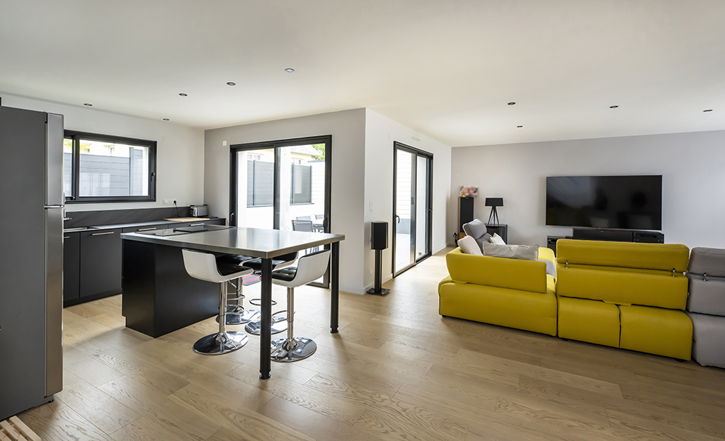 En tant que constructeur de maisons individuelles et contemporaines, nous avons eu la chance de réaliser ce beau projet en Bretagne. Construite à quelques kilomètres de Rennes, cette superbe maison moderne à toit plat offre un espace de vie spacieux, idéal pour une famille. Avec ses 145 m², la maison offre une esthétique moderne et épurée, ainsi que de nombreuses fonctionnalités pratiques pour une vie confortable et agréable. Nous vous invitons à découvrir en détail cette maison unique, ses caractéristiques et son ambiance captivante à travers ce reportage photo.